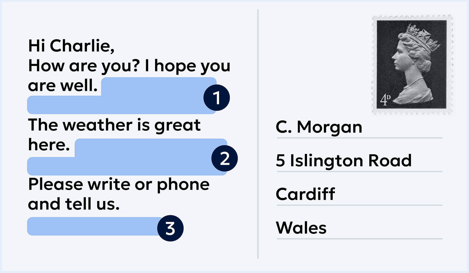 10. Your friend Fiona is writing a postcard to her friend Charlie, but she has some difficulties with writing it. Choose the correct options to complete the postcard.
